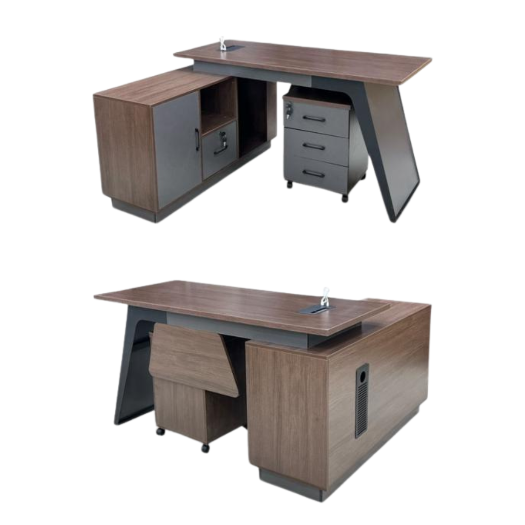 2. Mobile 3-Drawer Pedestal: A separate charcoal-finish unit with a centralized security lock and smooth-gliding wheels for flexible placement.
