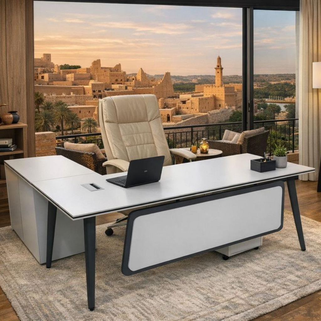 • Integrated Storage Wing: Aik wasee matching side return cabinet console shamil hai, jo secondary work surface aur high-capacity storage faraham karta hai.