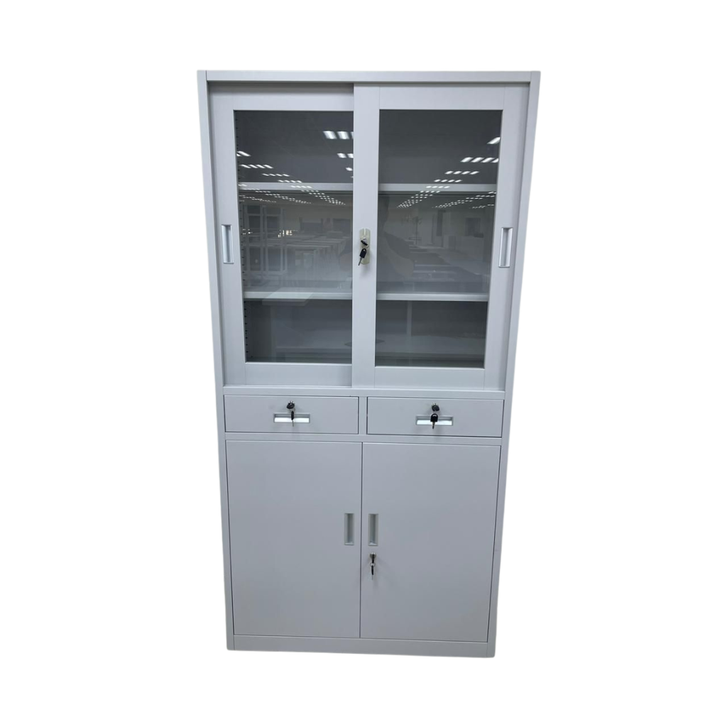 Space-Saving Sliding Glass: The upper doors slide smoothly within the frame, making this unit perfect for offices where floor space is at a premium.